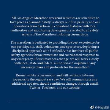 洛杉磯周日將如期舉辦近3萬(wàn)人規模馬拉松